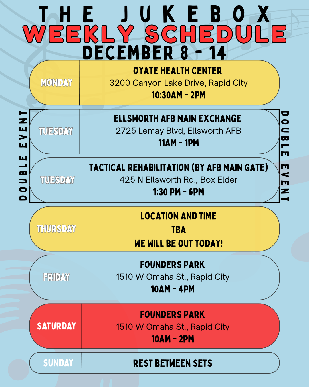 The Jukebox Soda Shop is a family-run soda trailer serving up uniquely mixed sodas, refreshing flavored waters, and high-energy revivers, all with a retro, music-inspired twist. Built from a love of bold flavors and classic tunes, we bring the fun of a vintage soda fountain to modern-day crowds. Our menu is packed with creative drinks and Jukebox Munchies like Cake Pops and Candy Sticks, making every stop a flavorful experience. Whether you’re looking for a cool refreshment, a fizzy boost, or just a good time, we’re here to serve up great drinks, good vibes, and rockin’ memories—one sip at a time! 🎶🥤✨